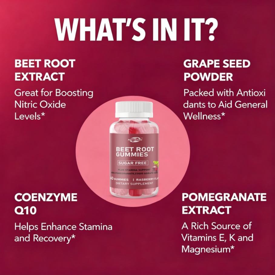 Gummies de racine de betterave naturelles en vente chaude, marque privée OEM, complément végétalien sans OGM pour l'énergie et le soutien immunitaire