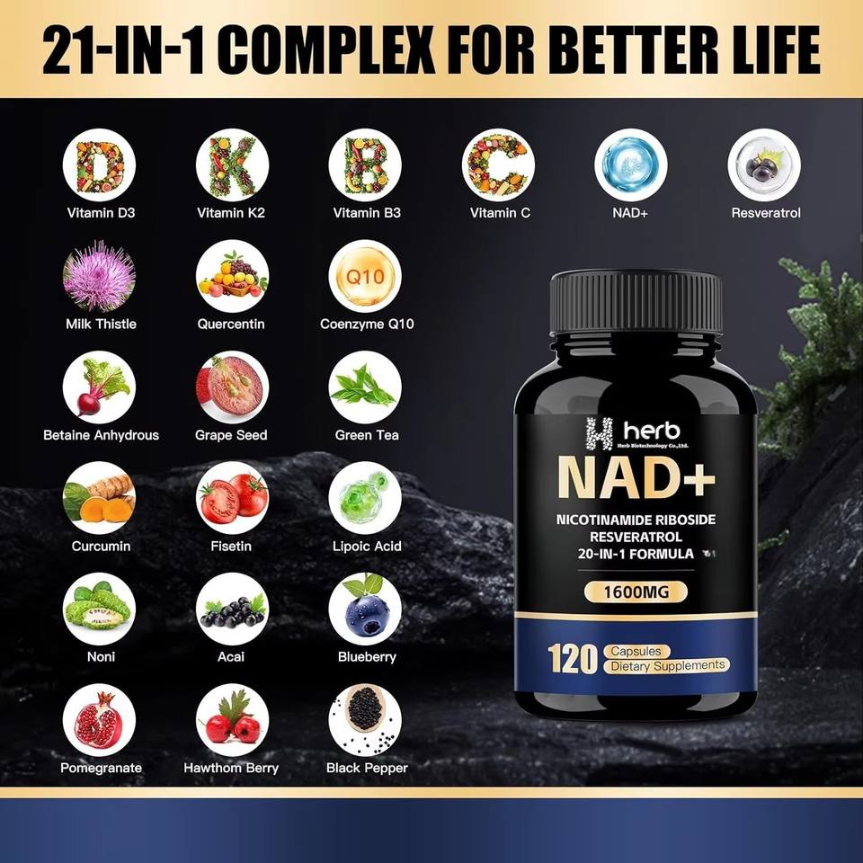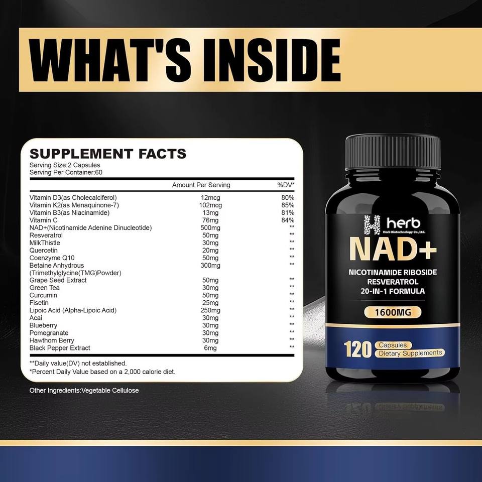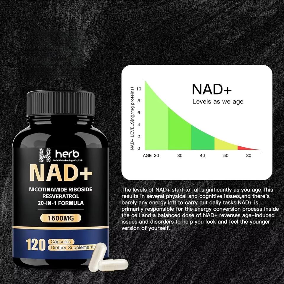 Capsules NAD+ à étiquette privée OEM, complément anti-âge, stimule l'énergie et la santé cellulaire, capsules NAD+ en gomme