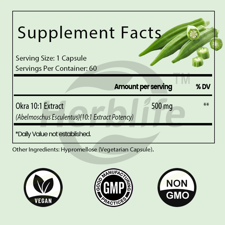 Extrait d'Okra Marque Blanche OEM - Fibres Solubles pour la Santé Cardiaque, Antioxydant, Soutien Digestif et Intestinal, Bien-être, Végétalien