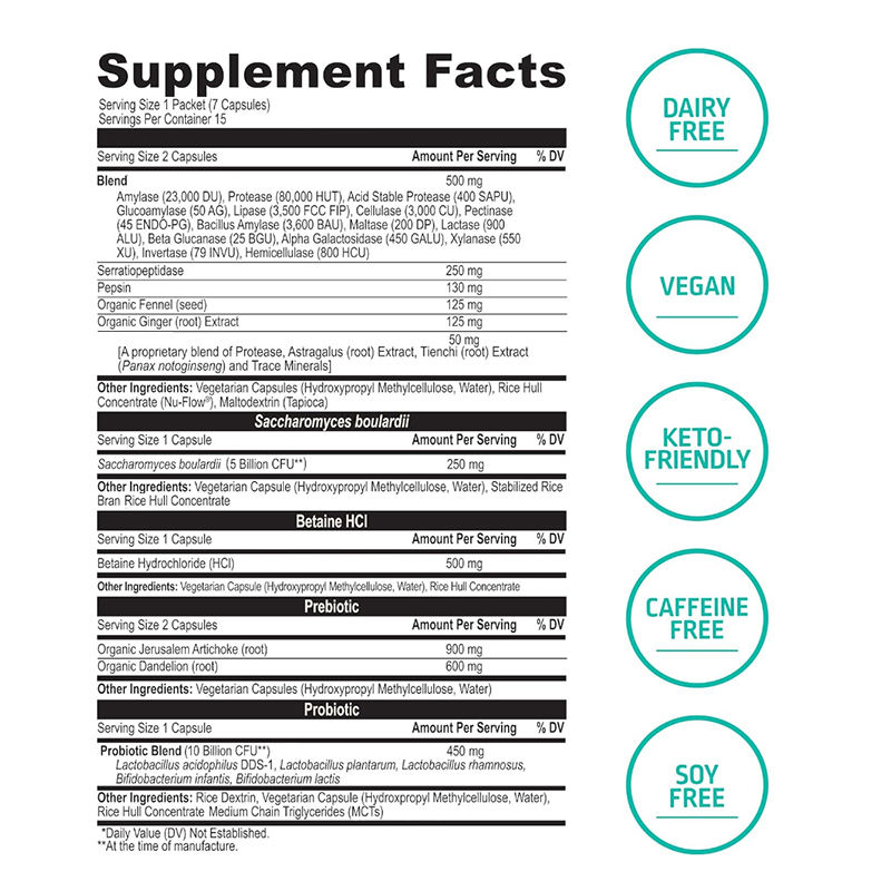 OEM Marque privée Capsules de boisson santé probiotique biologique intestin côlon Complément alimentaire en fibres avec enzymes digestives intestinales