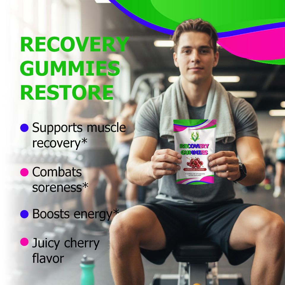 Gummies de récupération OEM à marque privée, supplément de récupération musculaire saveur cerise avec potassium, reconstituant les électrolytes