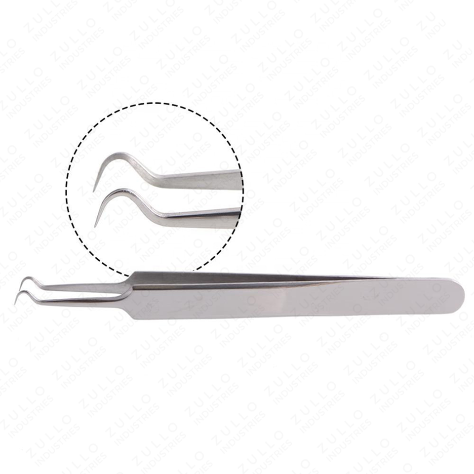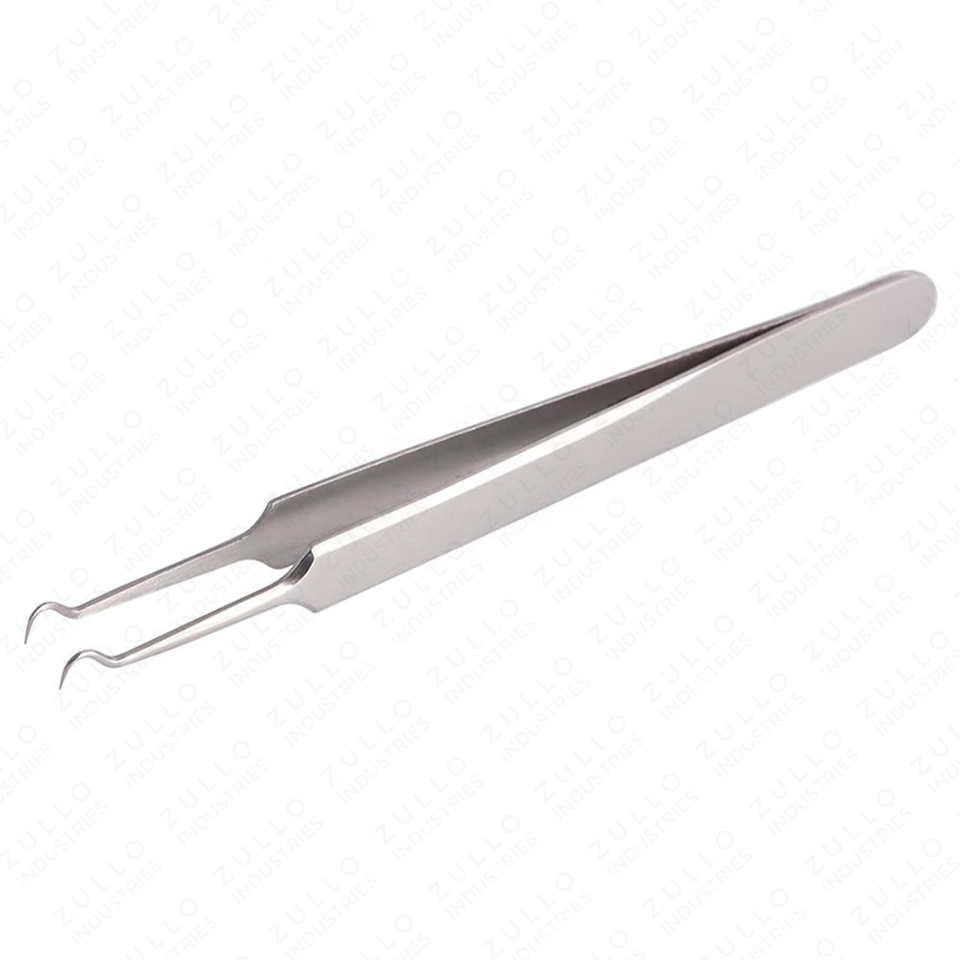 Pince à épiler professionnelle en acier inoxydable OEM à marque privée, outil à pointe crochet argentée pour extensions de cils et extraction d'acné