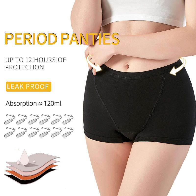 Culottes Boyshort OEM en Gros de Haute Qualité, Anti-Fuites, 4 Couches de Coton Absorbant, Sous-vêtements Menstruels pour Femmes