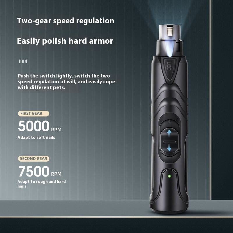 OEM Professional 2 Speed Low Noise USB Rechargeable Electric Pet Nail Grinder Trimmer with LED Light for Dog Cat Puppy Kitten