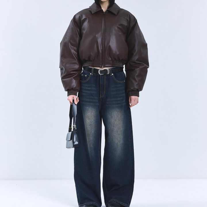 Veste d'hiver en cuir PU sur mesure pour femmes, modèle professionnel OEM, veste courte à col simple, veste en duvet de qualité supérieure