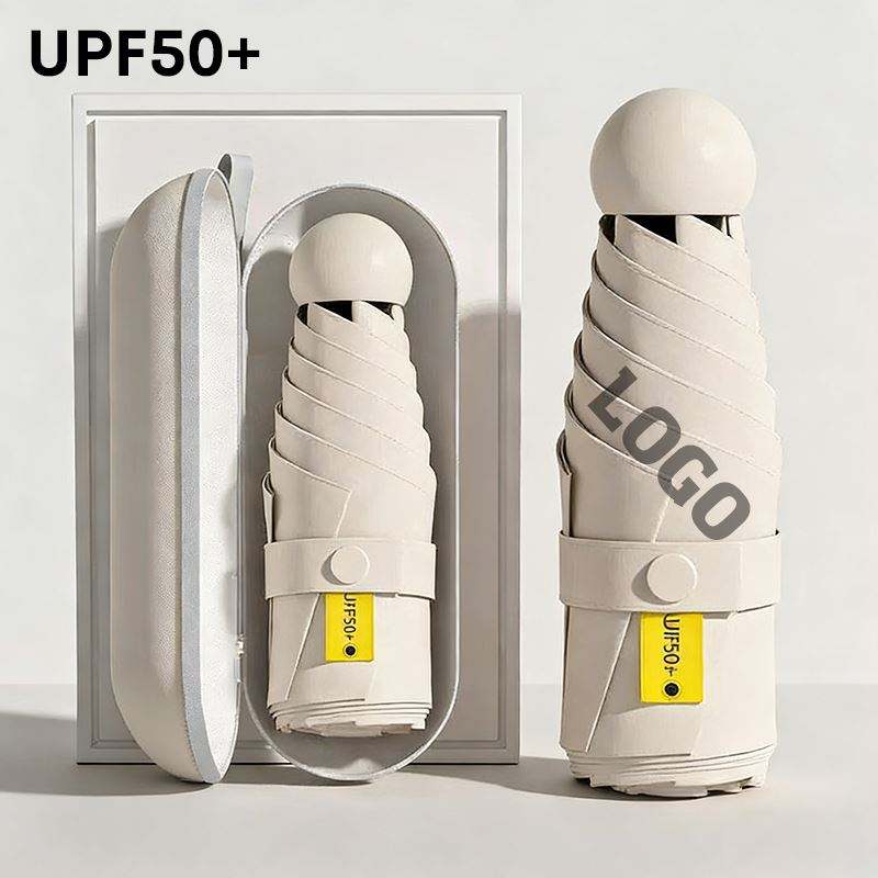 Parapluie de poche mini OEM promotionnel, cadeau d'affaires personnalisé, ultra léger, 6 baleines, pliable en 5 sections, avec poignée anneau et logo, protection UPF50+