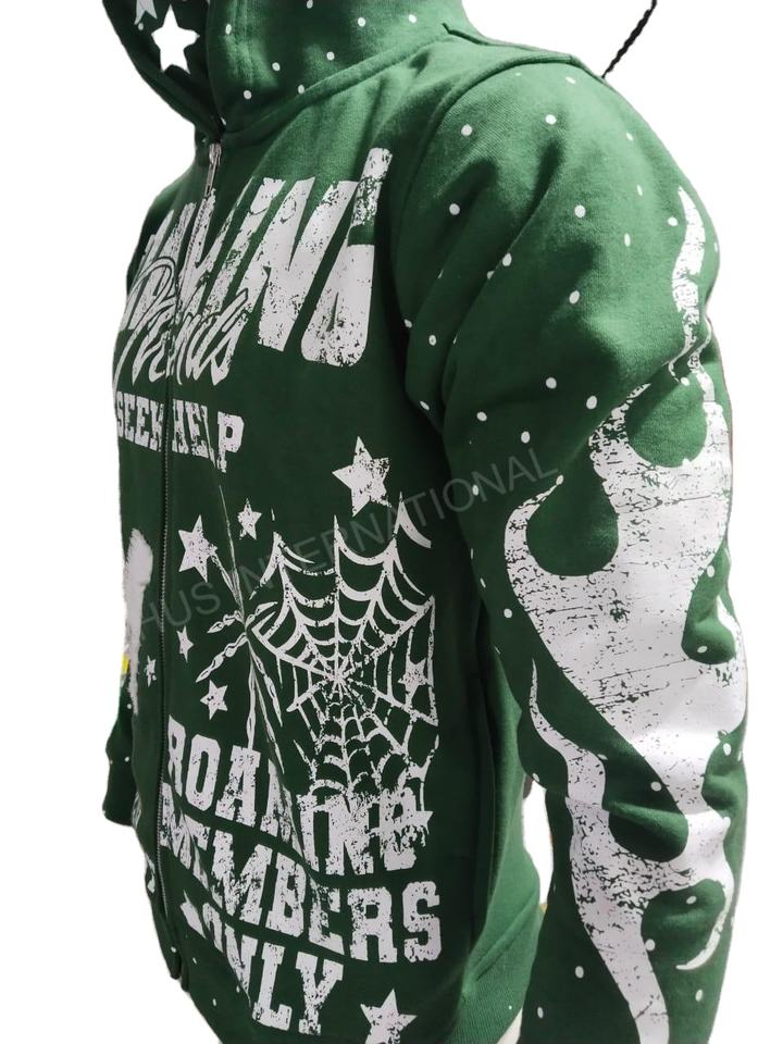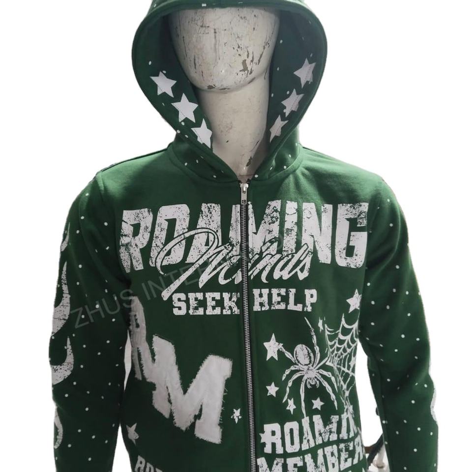 Veste d'hiver surdimensionnée pour homme, de haute qualité, écologique, respirante, imprimée à l'écran, broderie 3D, épaisse, effet vieilli, avec fermeture éclair