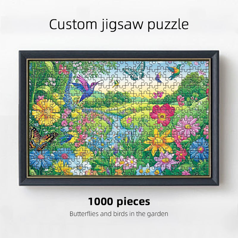 Usine de puzzles OEM, personnalisation, 1000 pièces, papillons dans le jardin, impression de dessins animés colorés, puzzle pour enfants et adultes