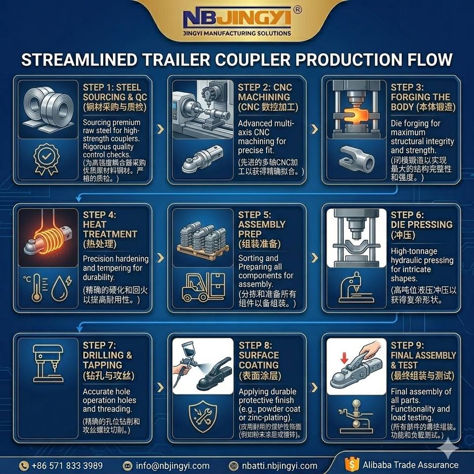 Attelage de remorque droit de 2 pouces de qualité OEM avec loquet à déclenchement, remplacement haute résistance pour la sécurité de remorquage