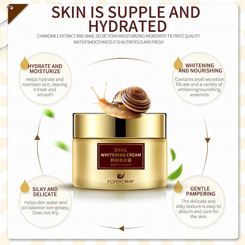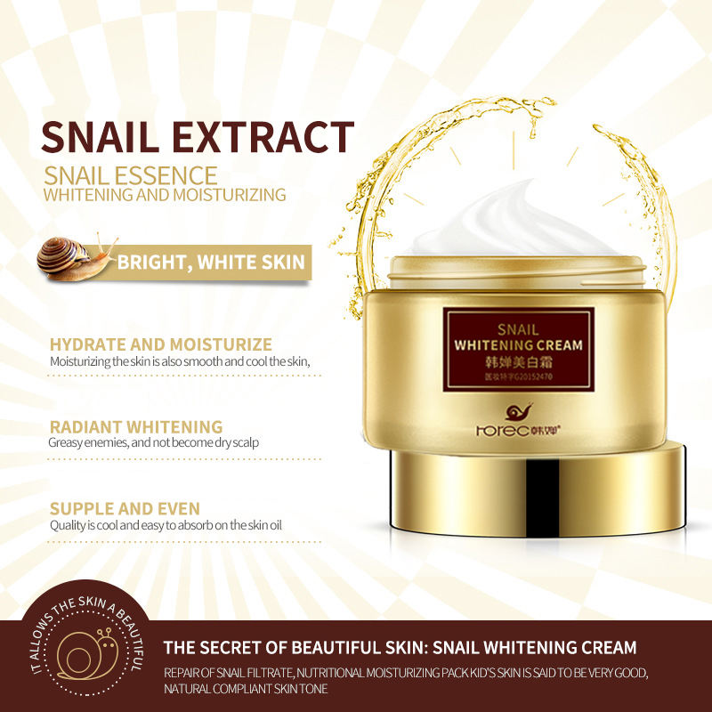 OEM ROREC Marque privée Crème hydratante pour le visage d'escargot blanchissante pour les soins de la peau Beauté hydratante Bio Meilleure crème blanchissante pour le visage