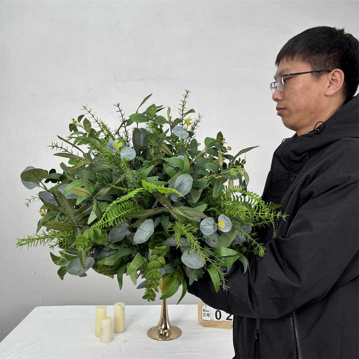 Composition florale artificielle réaliste en soie OEM, boule de verdure faite à la main, centre de table de mariage