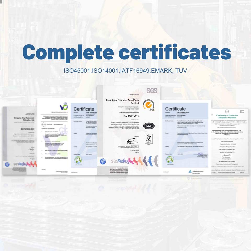 Certifications:ECE R90, IATF 16949, ISO 9001, ISO 14001, AMECA...