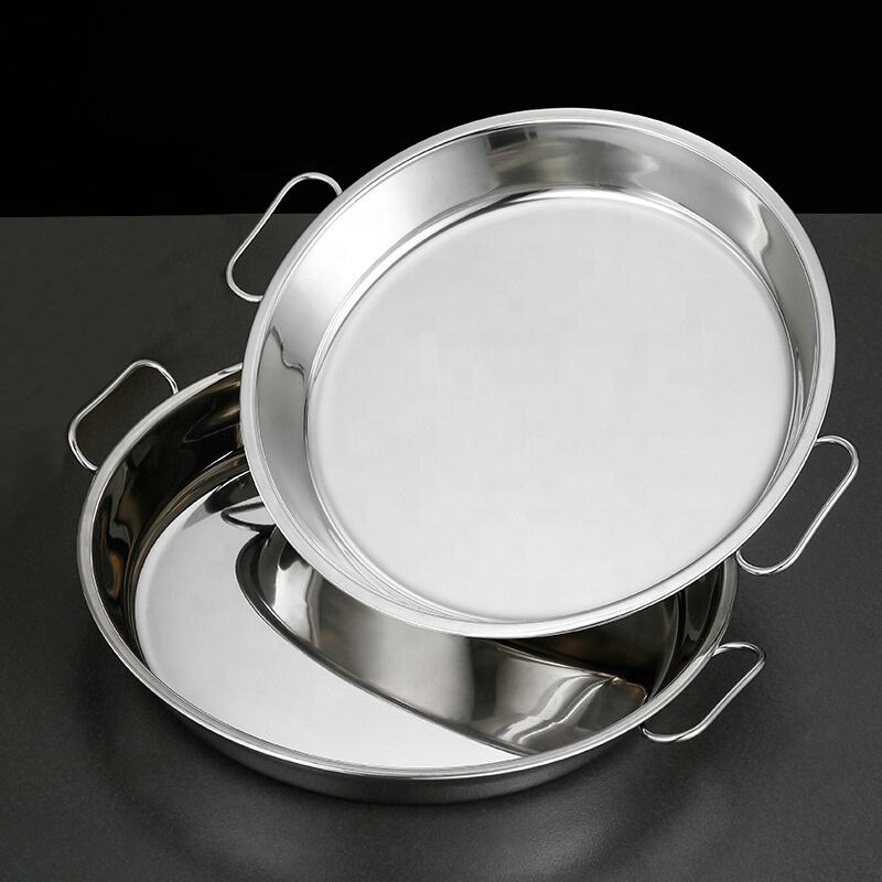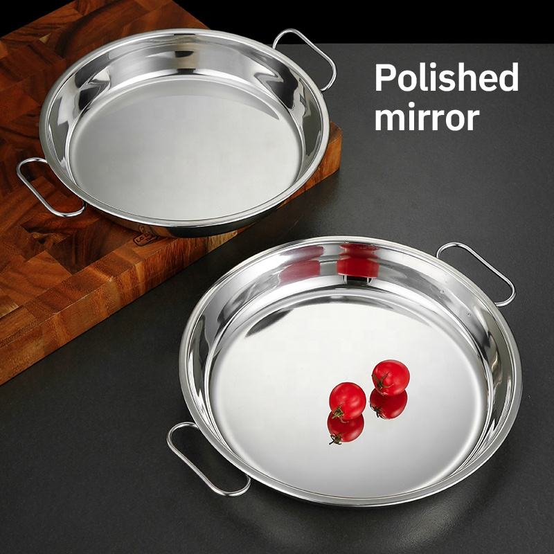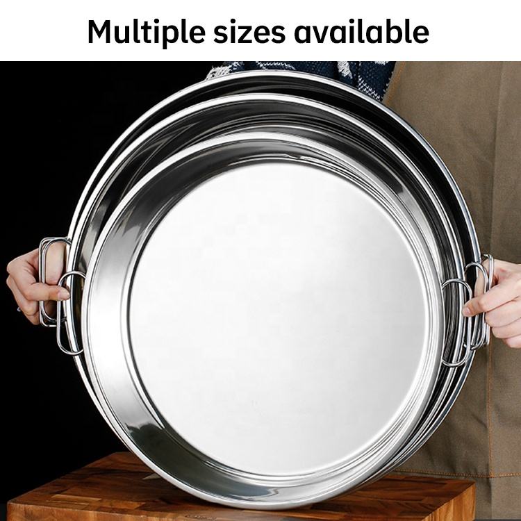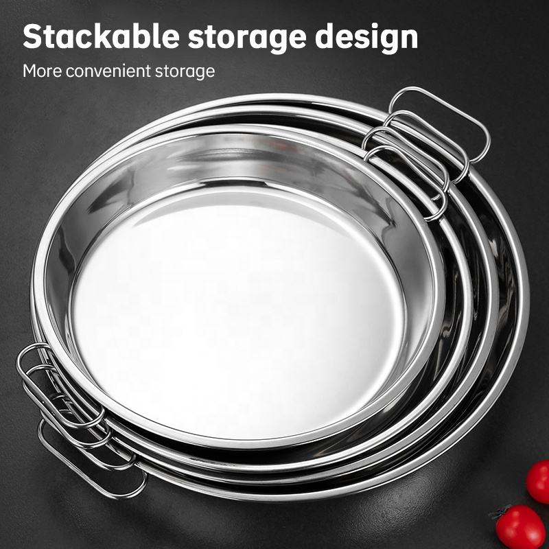 Assiettes à dîner de restaurant OEM Plateau à pizza rond Plateau de cuisson léger en acier inoxydable Plats de service pour la restauration