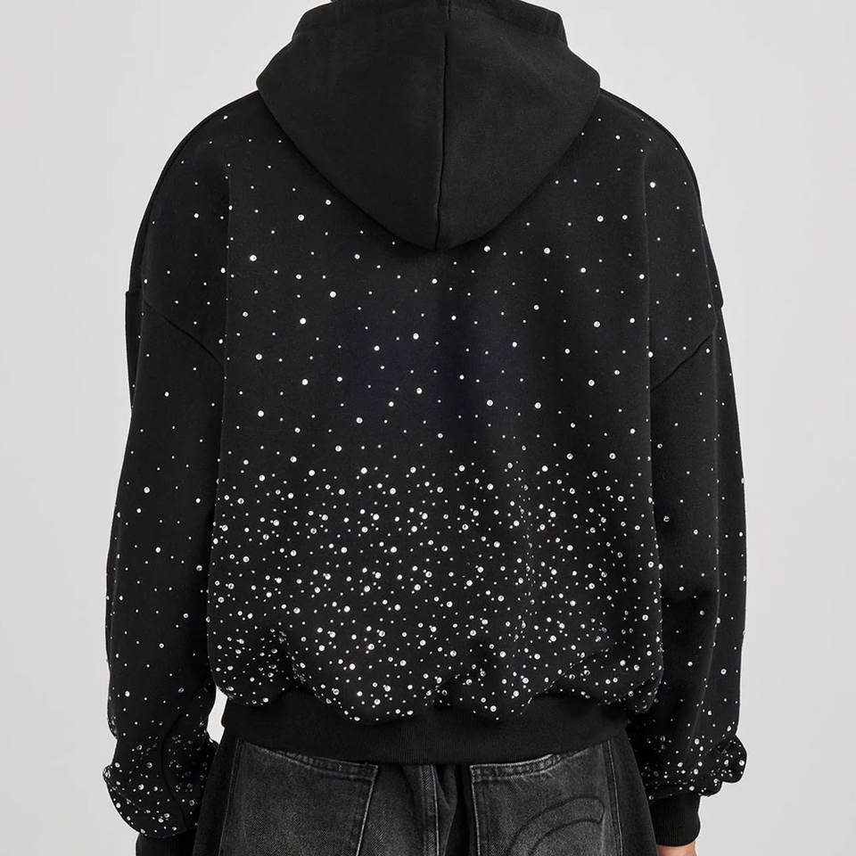 Fournisseur de sweats à capuche en strass OEM, sweat à capuche de haute qualité avec décoration en pierres de cristal, idéal pour les marques de vêtements à étiquette privée