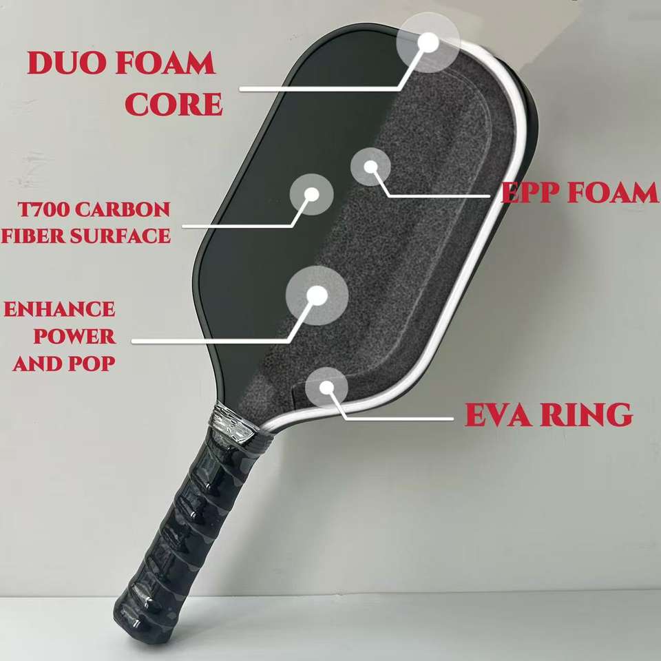 Raquette de pickleball OEM Ridge-Core Design EPP EVA en fibre de carbone brute, équilibrée pour les desserts sucrés, sans motif
