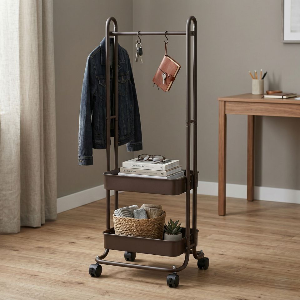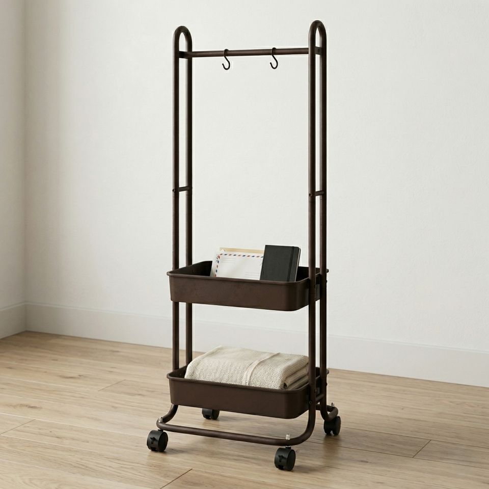 Vente OEM Porte-vêtements double suspendu en métal Roues DIY Home Housewares Organisateur de stockage Fabricant d'usine pour la blanchisserie
