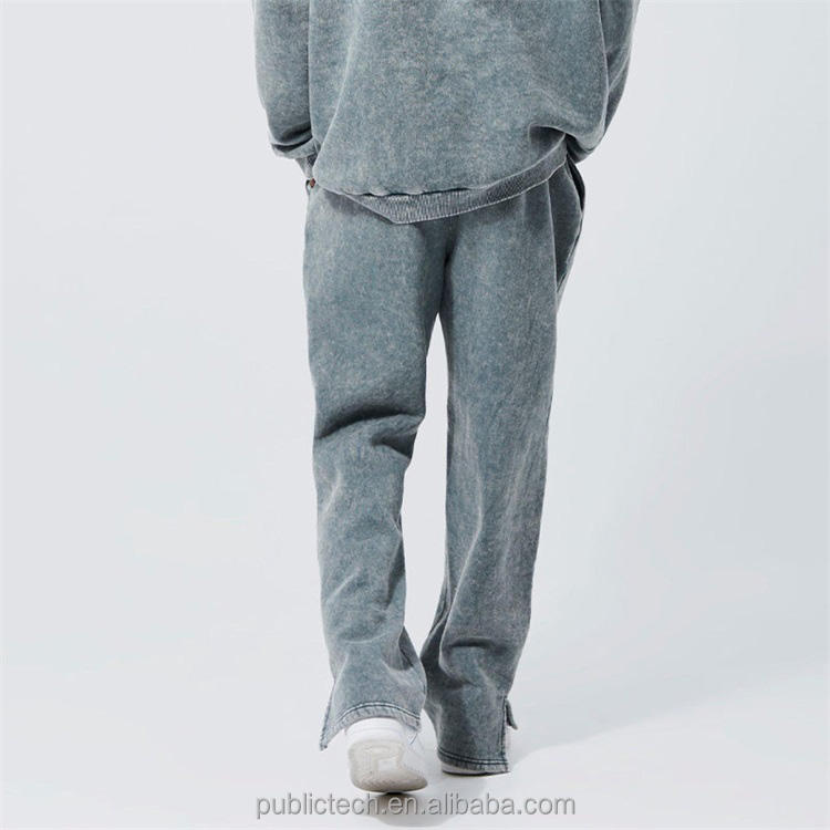OEM Pantalon de survêtement en coton mélangé avec logo de sérigraphie en éponge française à ourlet fendu, jambe droite pour hommes