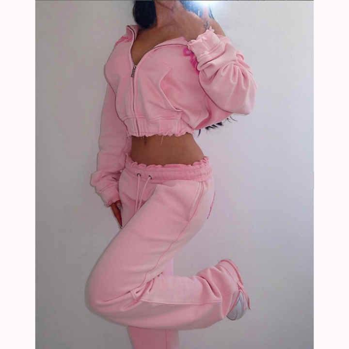 Service OEM 2025 personnalisé rose vieilli sweat à capuche zippé femmes survêtements entraînement joggers ensembles femmes deux pièces pantalon ensemble à vendre