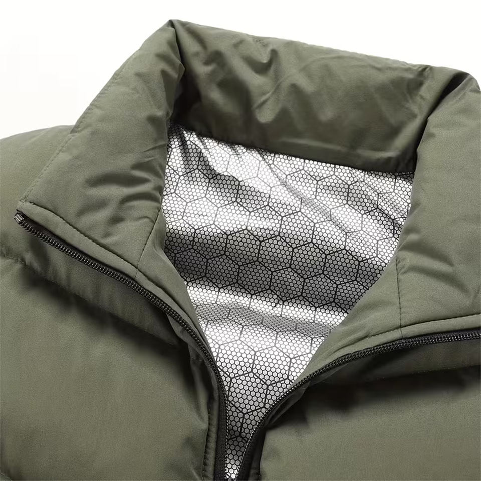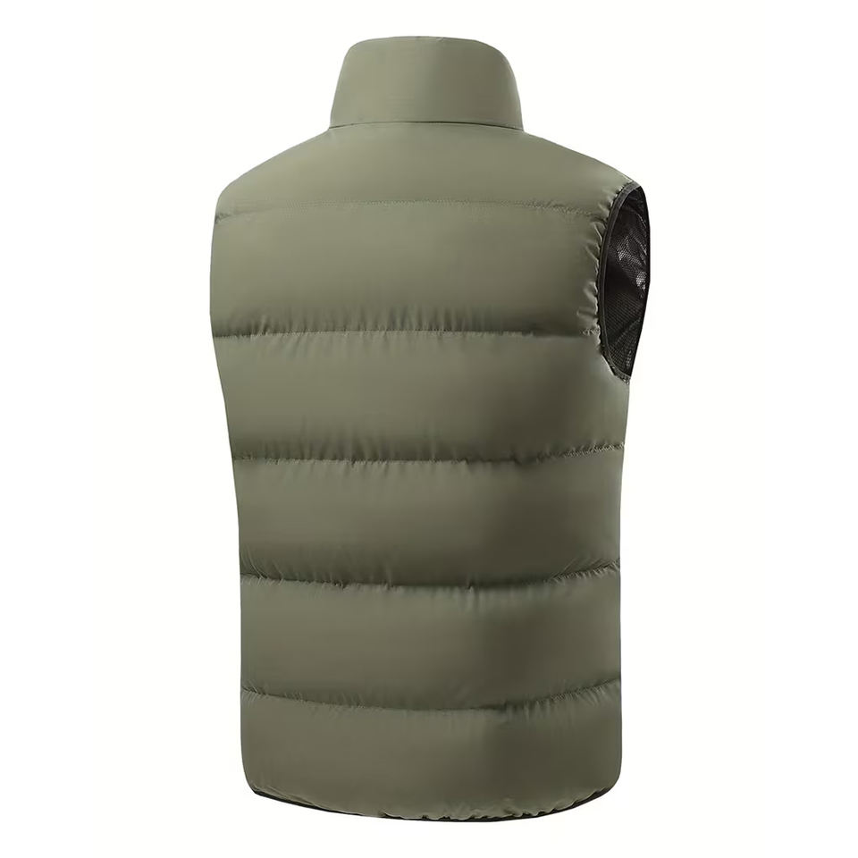 Service OEM – Gilet matelassé coupe-vent en coton pour homme, avec fermeture éclair, deux poches, col montant et logo frontal – Idéal pour l'extérieur