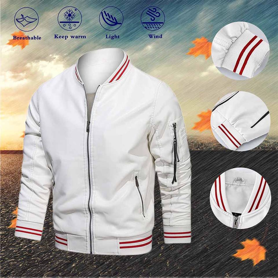 OEM Service Adults Bomber Jackets in White Color Full Sleeves Man Stylish Windbreaker Jackets With Custom Design