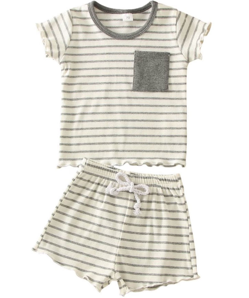 Ensemble court de t-shirt basique à col rond pour garçon avec poche en cuir