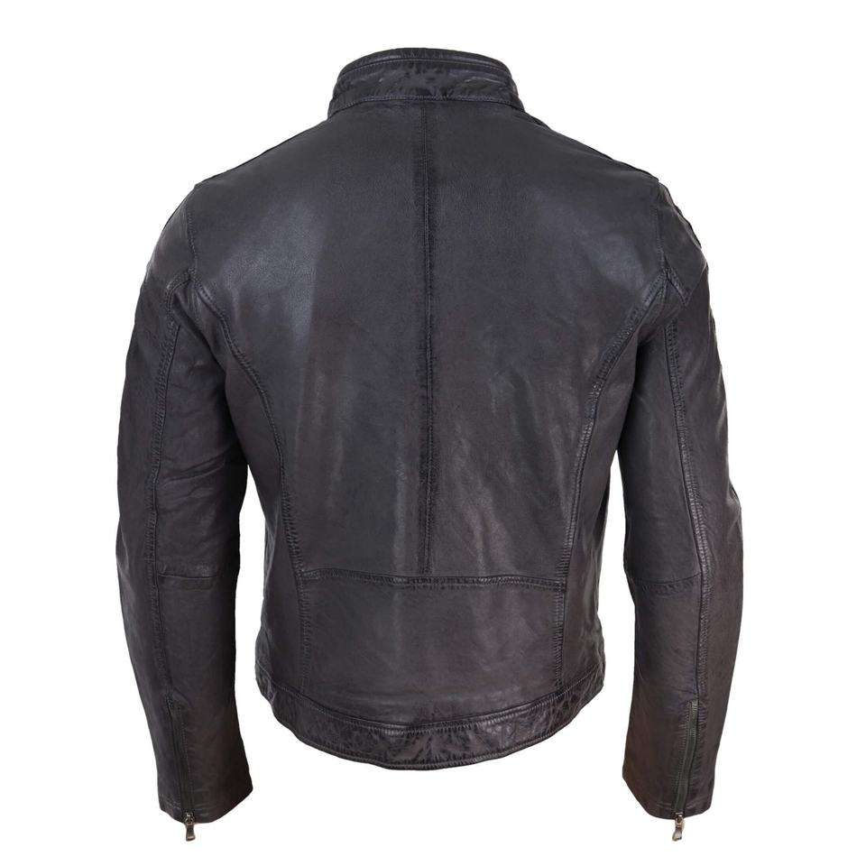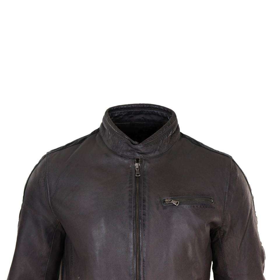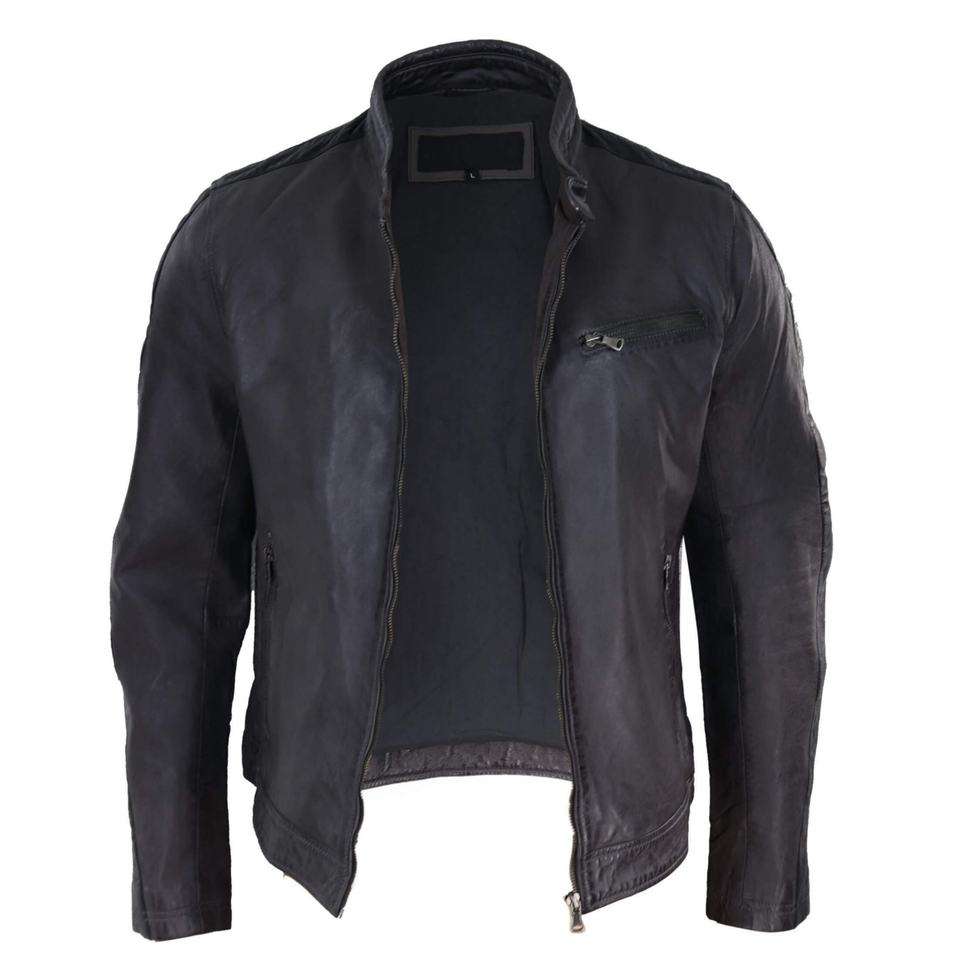 Veste en cuir véritable de couleur unie à col pour hommes, de haute qualité, à la mode personnalisée avec service OEM