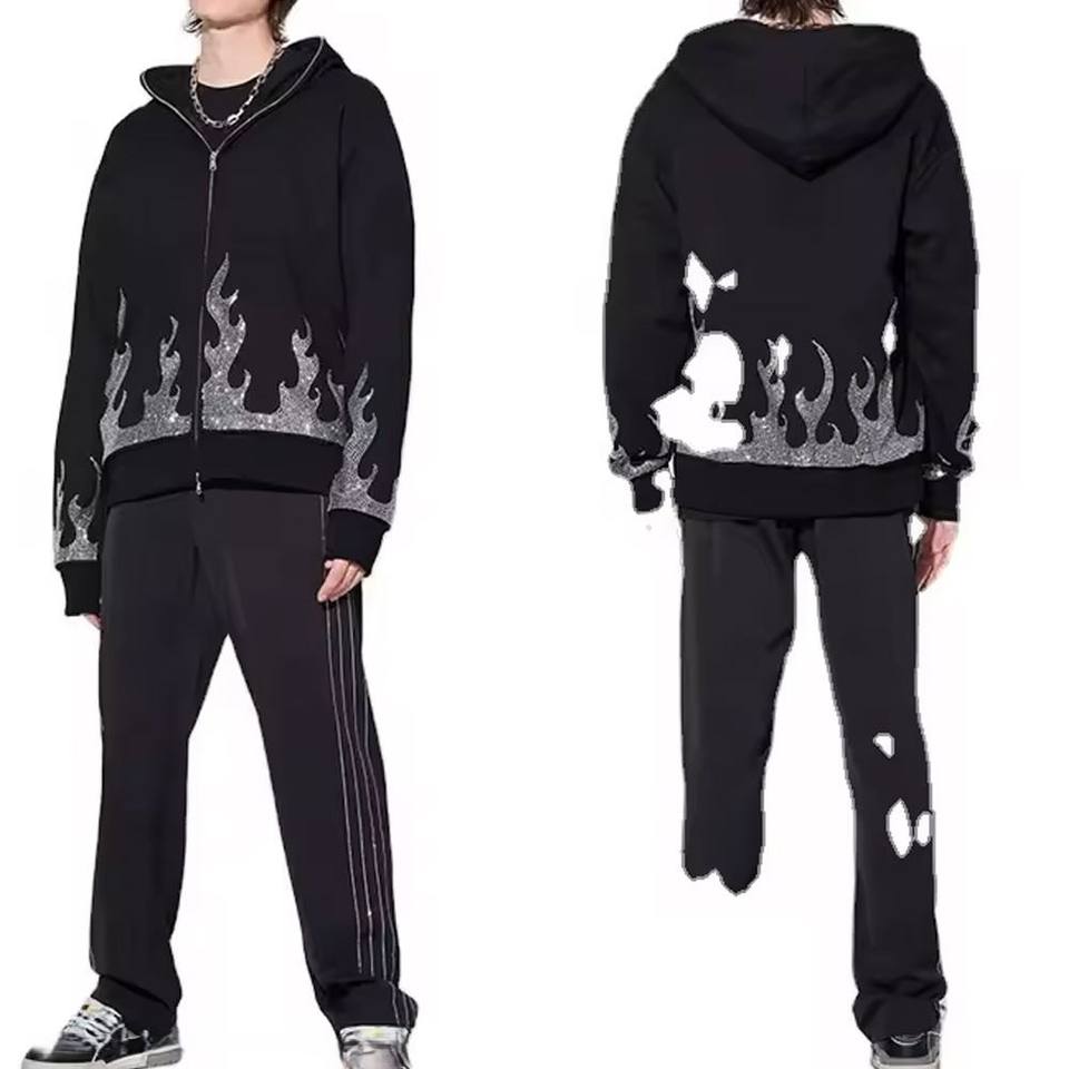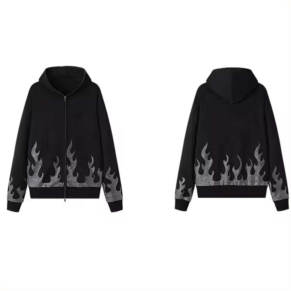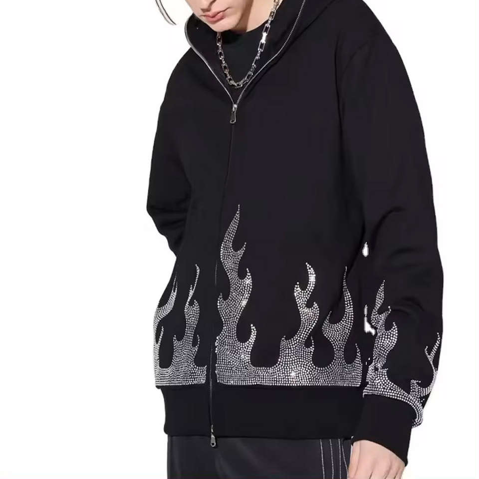 Sweat à capuche imprimé bouffant 3d avec logo personnalisé du service OEM Vente en gros Sweats à capuche unisexe avec strass et fermeture éclair sur le visage personnalisé