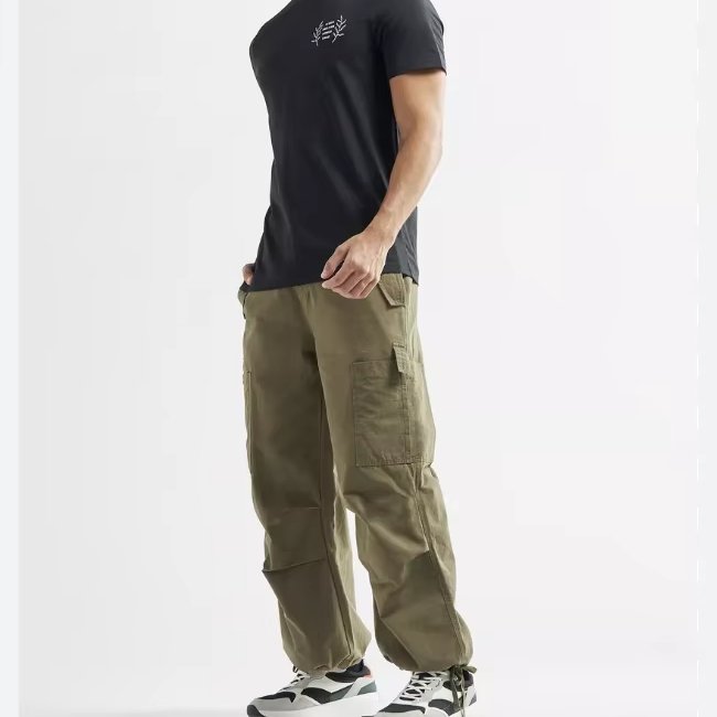 Service OEM Pantalon cargo personnalisé pour hommes Tissu anti-déchirure vert olive avec multi-poches et poignets brodés avec cordon de serrage