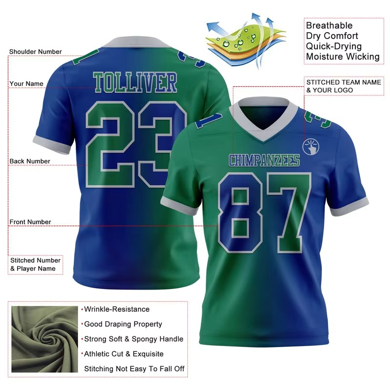 Service OEM, maillot de football américain personnalisé imprimé par sublimation, respirant, grande taille, vente en gros