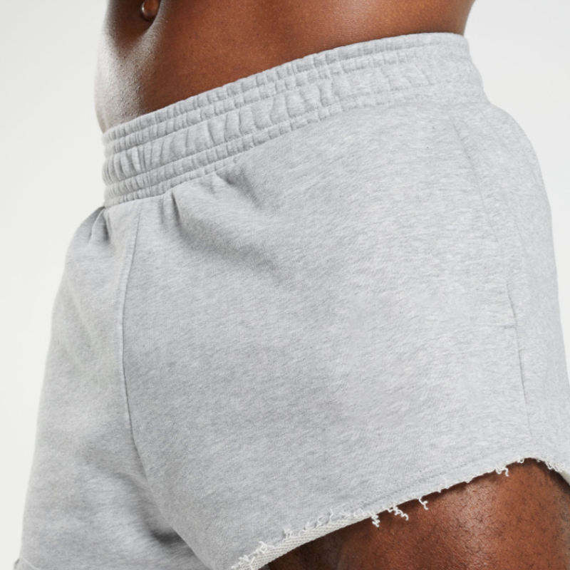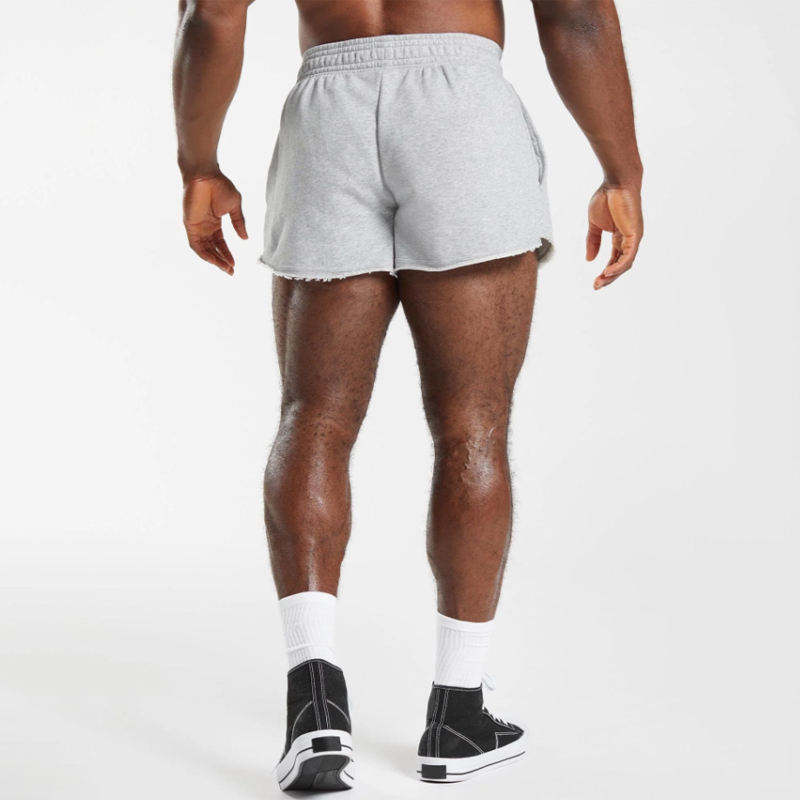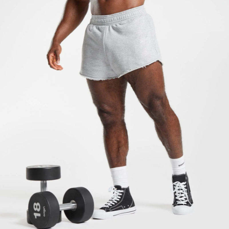 Shorts de sport gris pour femme, coupe ajustée, en coton anti-rétrécissement, avec poche latérale et bords bruts, haute respirabilité, style décontracté urbain, personnalisation du logo, service OEM
