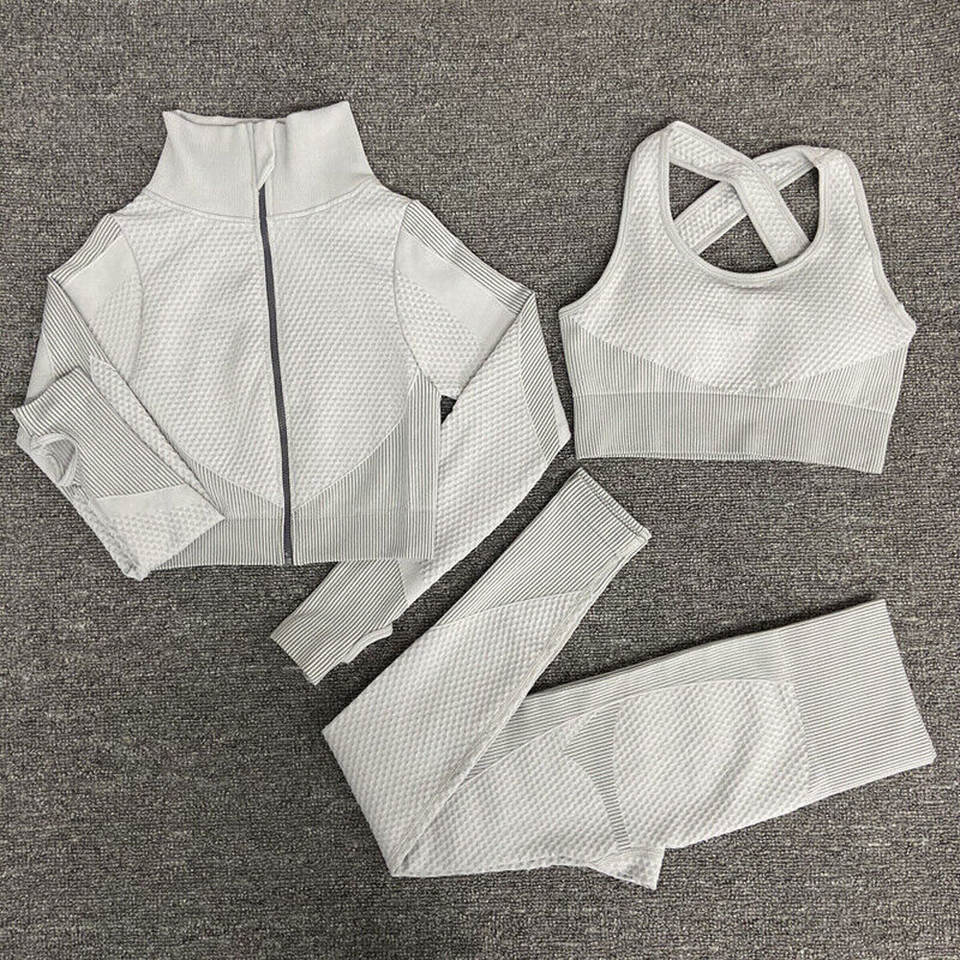Service OEM, logo personnalisé imprimé, ensemble de yoga 3 pièces, ensemble de yoga de qualité supérieure, taille plus, pour femme, ensemble de yoga à séchage rapide