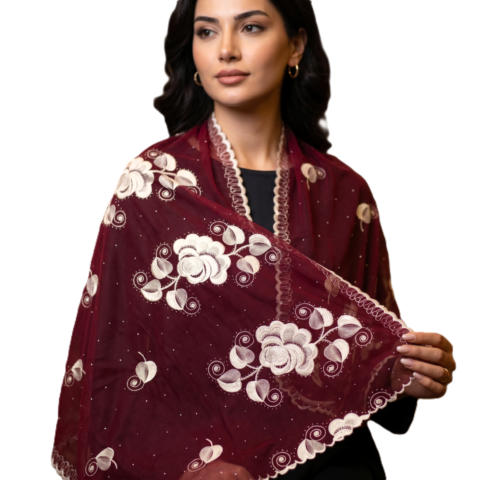 Châles en mousseline de soie personnalisés OEM en gros – Broderie florale en strass, doux, légers, longs, multicolores pour femmes, été