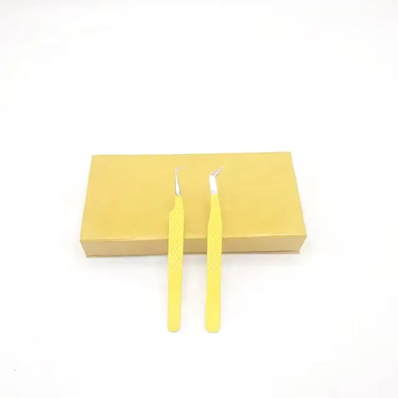 Boîte d'emballage en carton pour pince à épiler de service OEM Boîte de greffe de deux pinces jaune avec pince à épiler de qualité supérieure