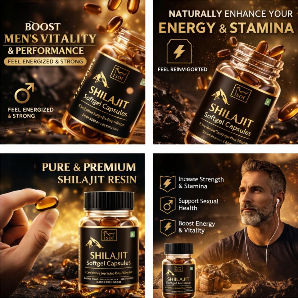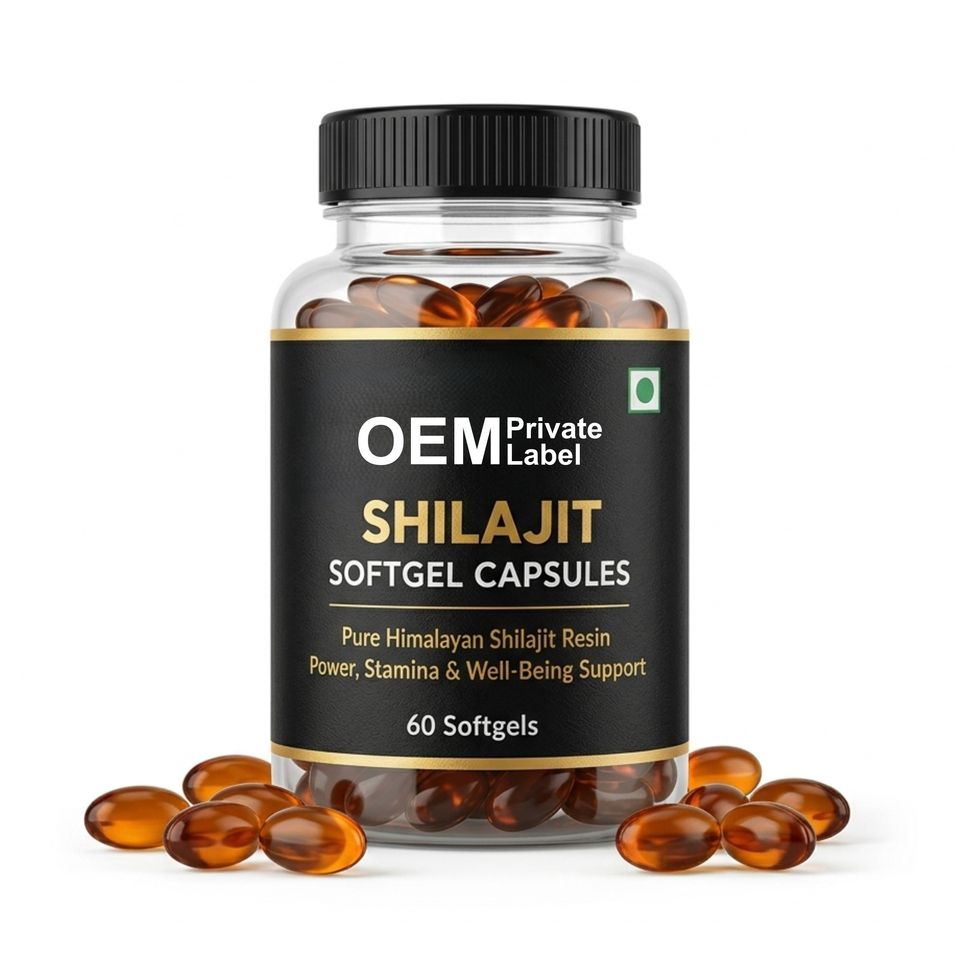 Capsules de Shilajit OEM en gélules molles, 100% résine de Shilajit pure avec acide fulvique pour l'énergie, la résistance et le soutien quotidien du bien-être