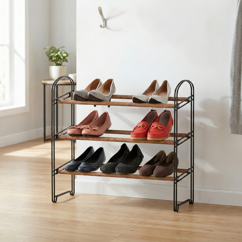 Organisateur de chaussures portable moderne OEM d'origine, 1 niveau, finition imitation bois, métal, meuble de rangement pour l'entrée, meubles de salon, Taiwan