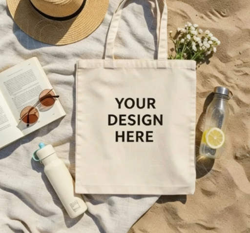 Sac de courses en toile de coton biologique recyclé, réutilisable, vierge, imprimé en couleur avec logo personnalisé, format OEM