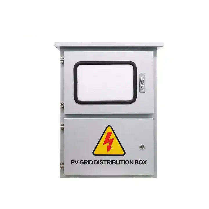 Boîtier de distribution métallique OEM pour systèmes photovoltaïques solaires, 380V AC, avec disjoncteur connecté au réseau et protection contre les surtensions, indice de protection IP65, usage industriel