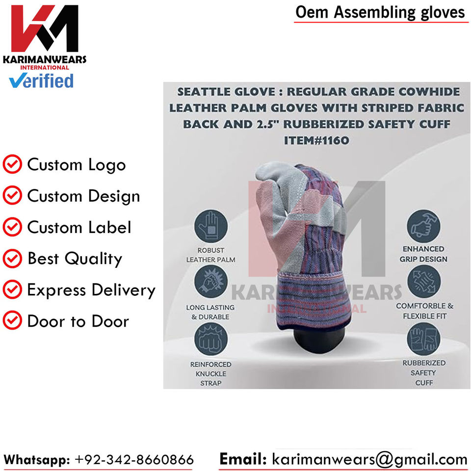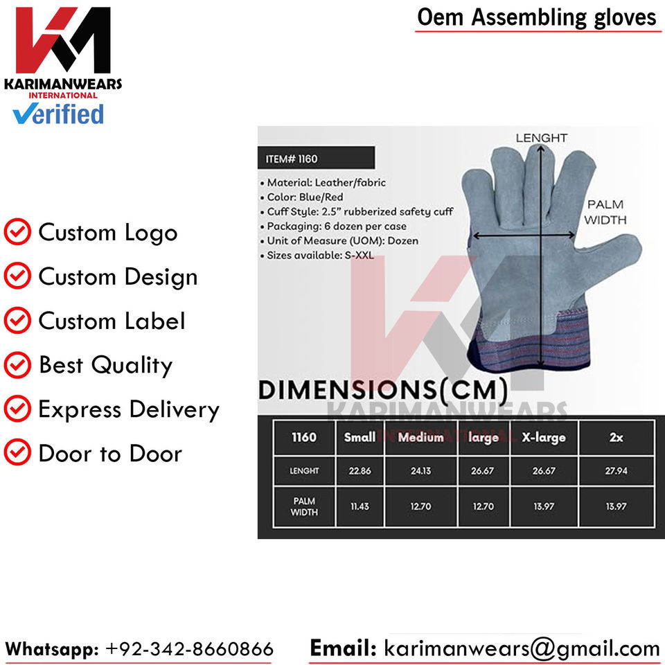 Gants de travail en cuir fendu OEM pour les constructeurs et les mécaniciens Gants de travail en cuir d'approvisionnement d'usine avec logo personnalisé OEM