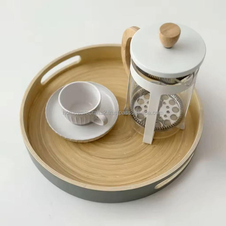 OEM Spun Bamboo Tray Supplier Natural Bamboo Serving Platter Durable Lightweight Eco Friendly Vietnam Bulk Orders