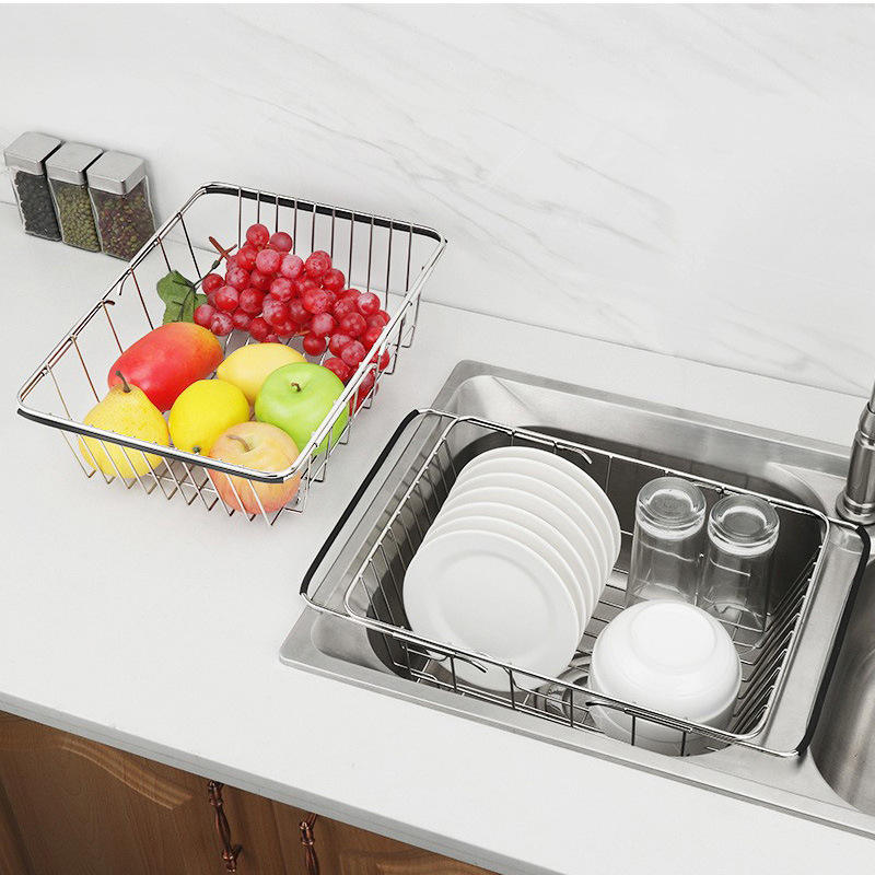 Panier d'égouttage d'évier extensible en acier inoxydable OEM pour organisateur de cuisine étagère d'égouttage étagère étagère à plaques