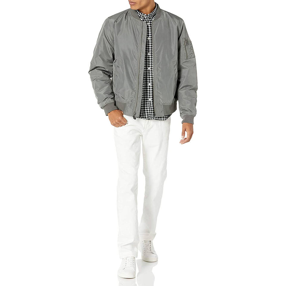 Veste bomber à logo brodé streetwear OEM, col rond, fermeture éclair, surdimensionnée, imperméable, vintage, en soie/coton, patchwork, pour homme