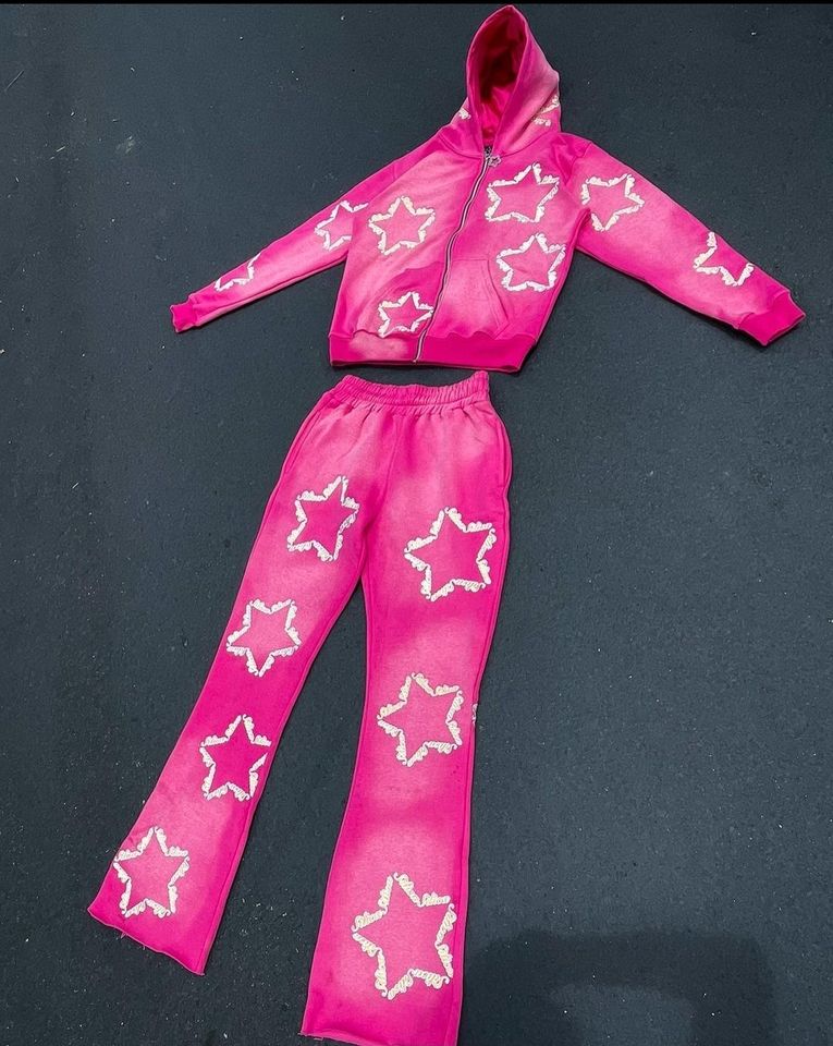 OEM Streetwear Heavyweight Sun Faded Sweatsuit Two Piece Sets Acid Wash Tracksuit Distressed Applique Patch Hoodie Set