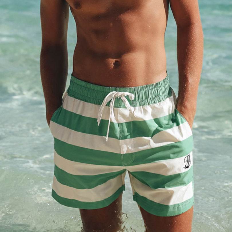 Shorts de plage rayés OEM pour hommes, imprimés, légers, 100 % polyester, séchage rapide, avec cordon de serrage à la taille