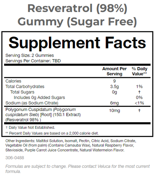 Product Name:Resveratrol (98%) Gummies (Sugar Free)