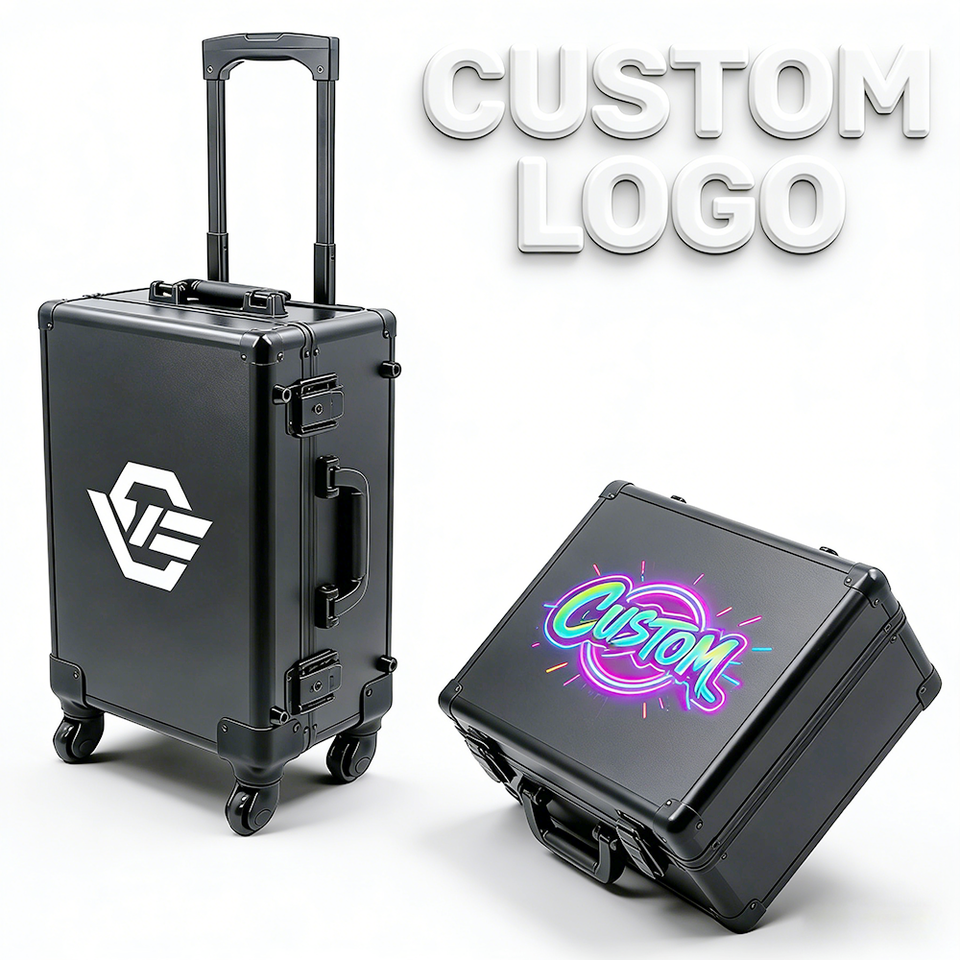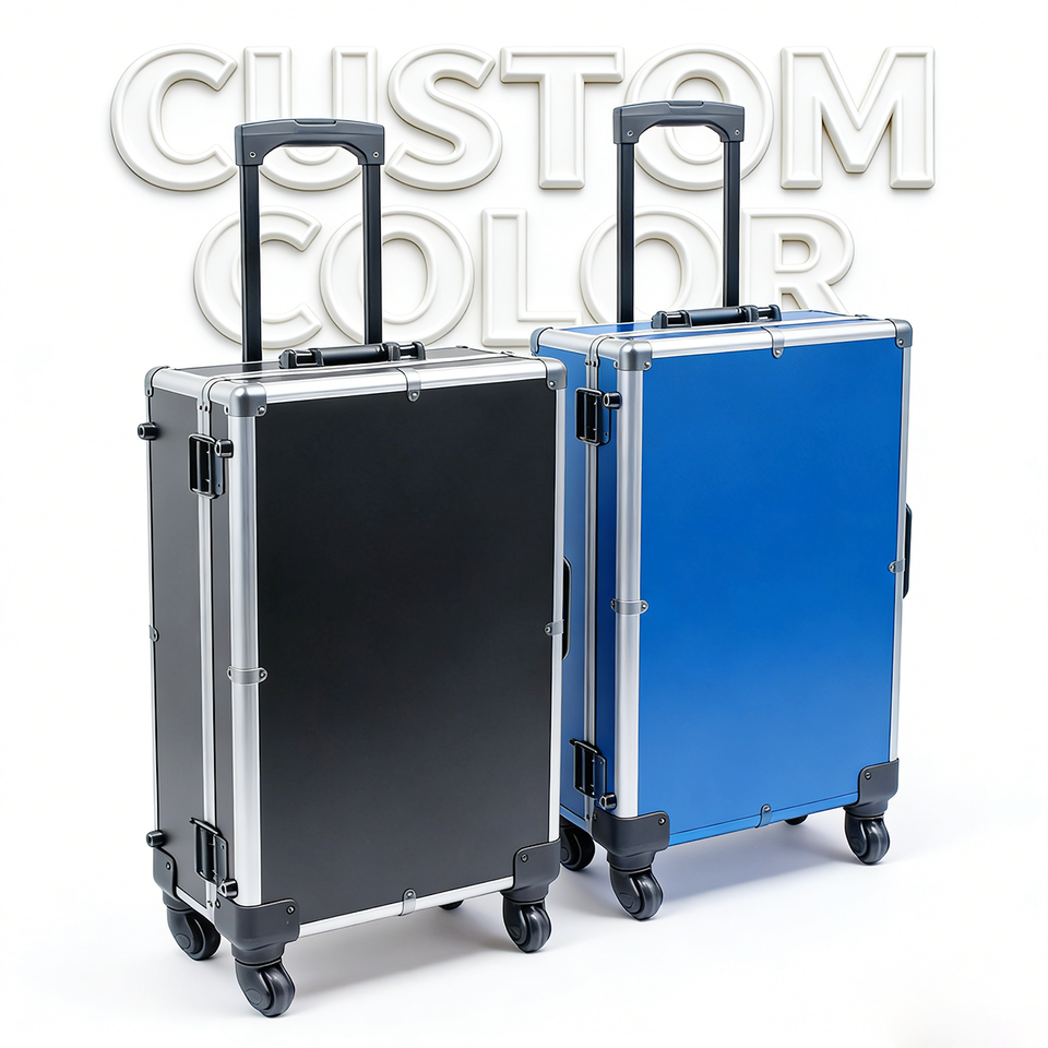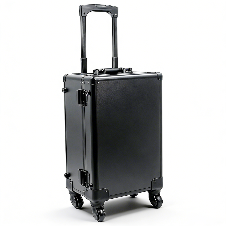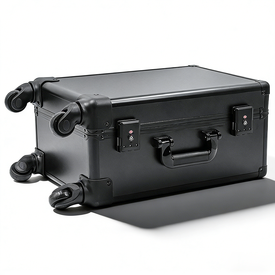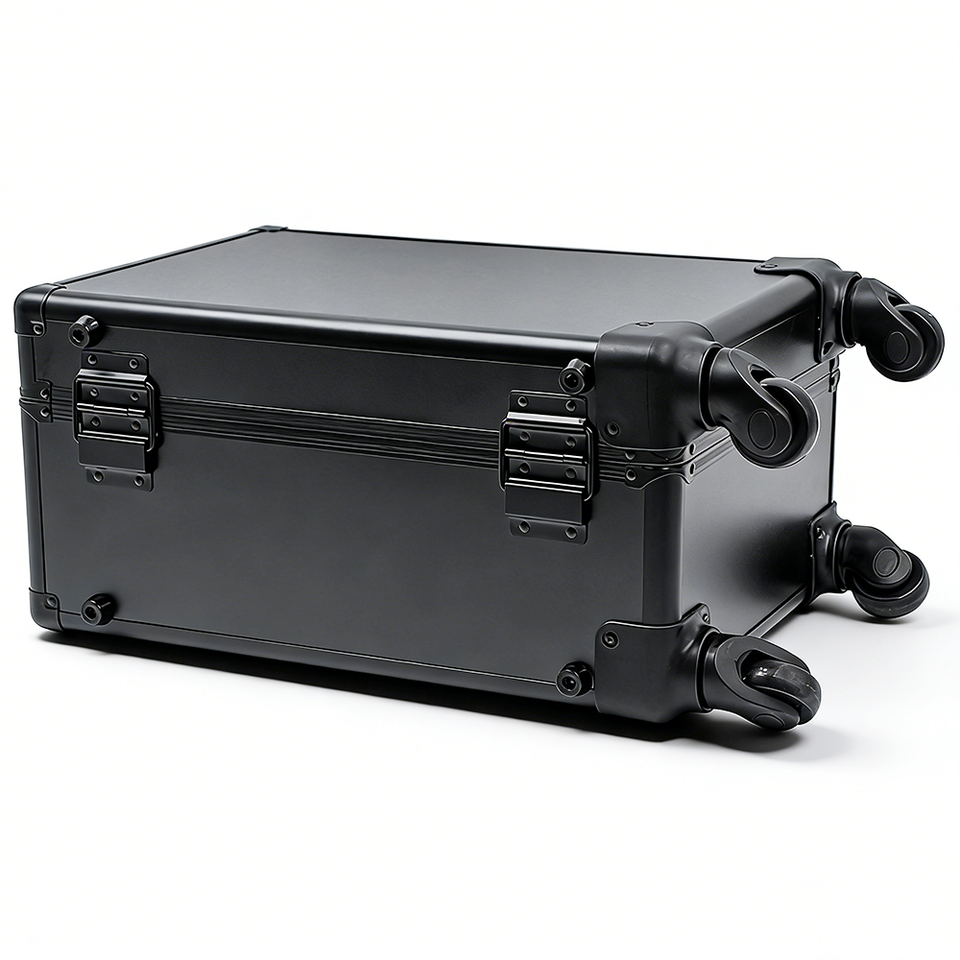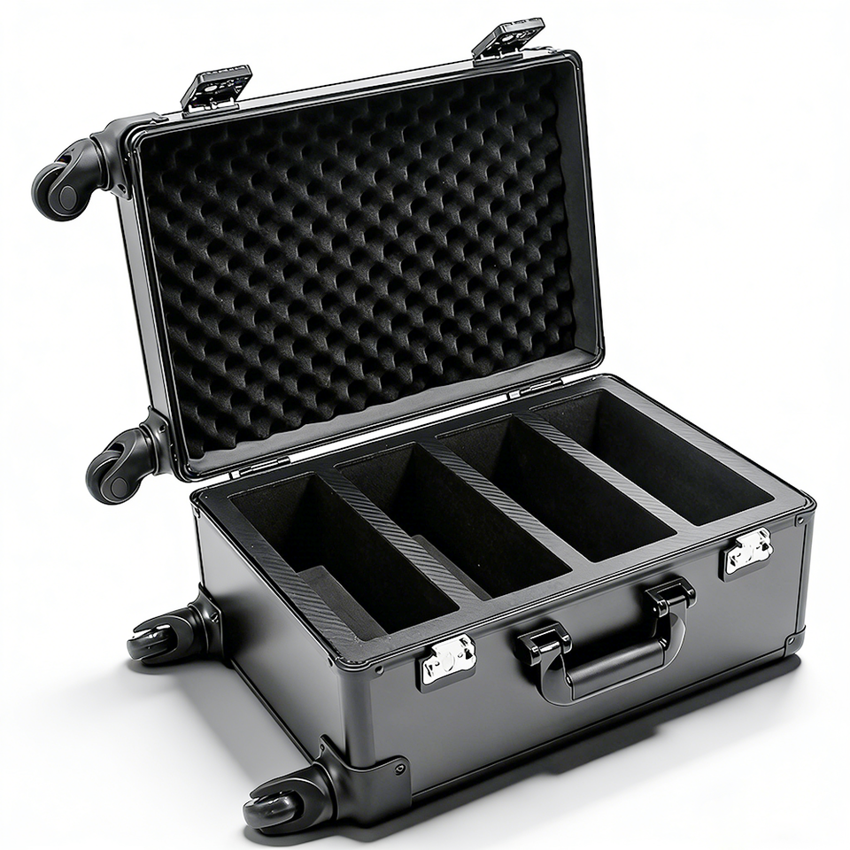 Boîte de rangement et de présentation roulante en aluminium de 18 pouces à 4 compartiments pour cartes de sport gradées et de collection, avec roulettes