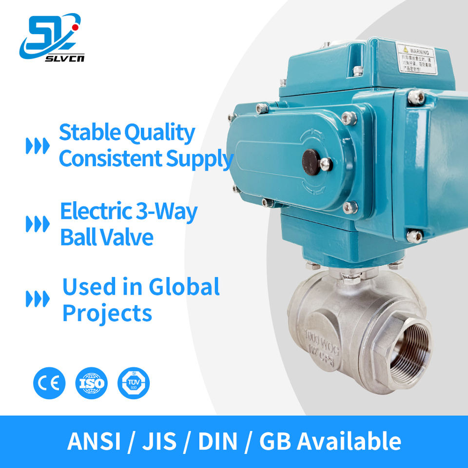 Vanne à boisseau sphérique flottante 3 voies anti-corrosion avec télécommande personnalisée, corps en acier inoxydable SS304/316, siège en PTFE/RPTFE, support OEM