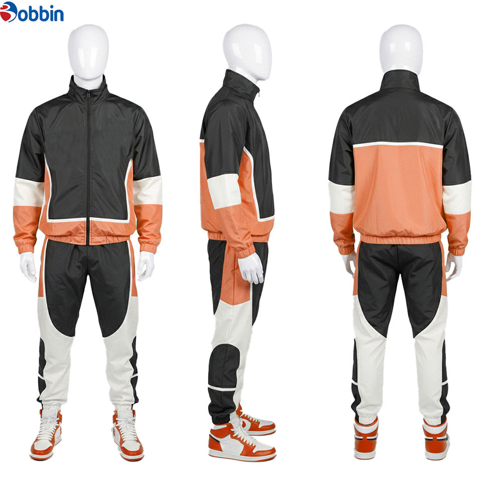 Ensemble survêtement homme en nylon coupe-vent personnalisé de qualité supérieure OEM, veste zippée et pantalon, streetwear, patchwork, polyester, sweat-shirt pour homme