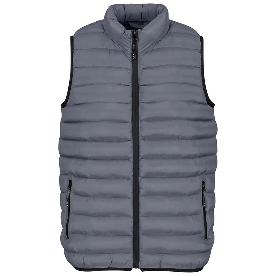 Veste bouffante de couleur noire unie de qualité supérieure OEM pour hommes, gilet matelassé à col montant et fermeture éclair en tissu polyester personnalisé