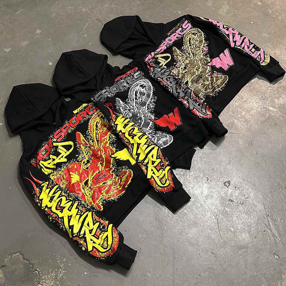 Technics:Embroidered, Printed, Washed, Puff Print, BLEACH WASH, Flocking, 3D embroidery, Dip Dye