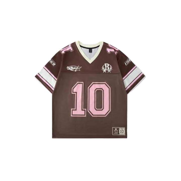 Maillot de football américain OEM à col en V et en maille de football Vente en gros Streetwear Vintage Retro Casual Oversized Box fit Tshirt